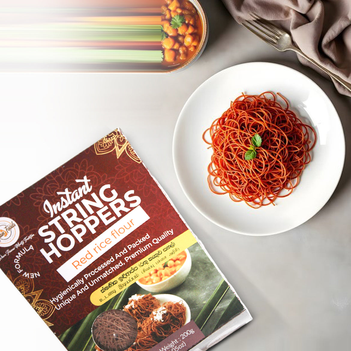 Make mealtime easy with our Instant String Hopper (Red), a quick and convenient option for a traditional Ceylonese dish. Simply add water, steam, and enjoy the vibrant flavor and texture of these string hoppers. Perfect for pairing with your favorite curries or sauces, it offers a delicious, authentic taste of Sri Lanka in just minutes.